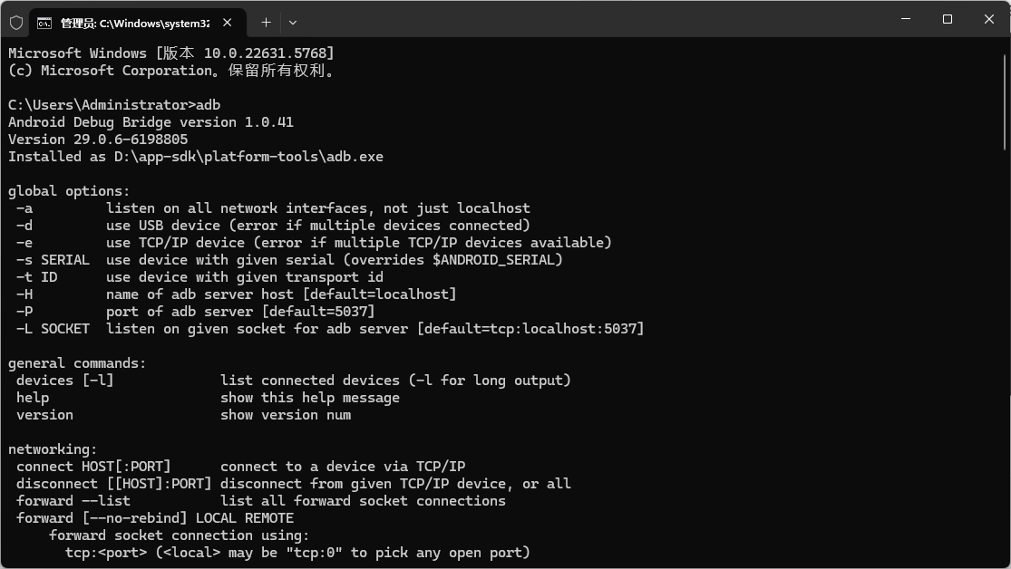 adb返回下面的提示则为adb安装配置成功