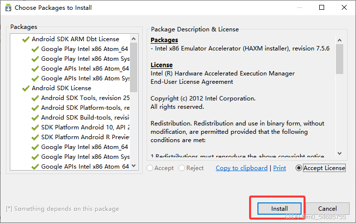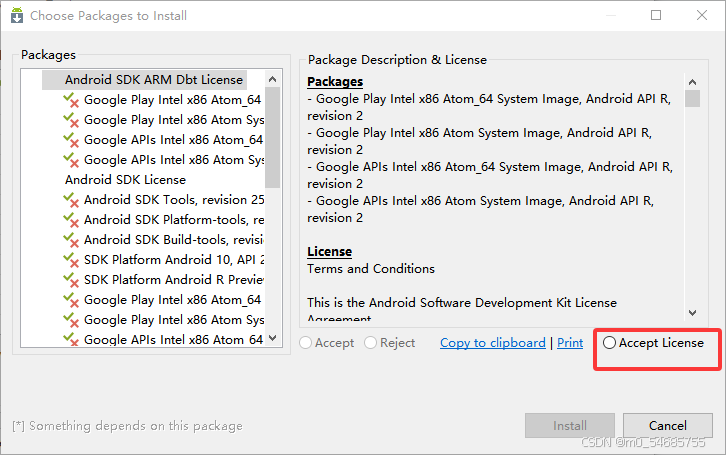 依次点击每一个包且点击Accept License
