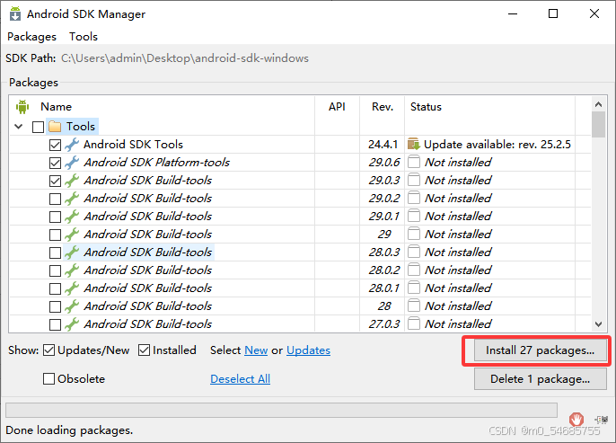 (SDK Manager.exe 是 Android 开发中用于下载、更新和删除 Android SDK 组件(包括不同版本平台、各类工具及系统镜像等),既支持图形界面操作也可通过命令行执行,为项目开发、兼容性测试及工具升级等场景提供开发环境支持的重要工具。)