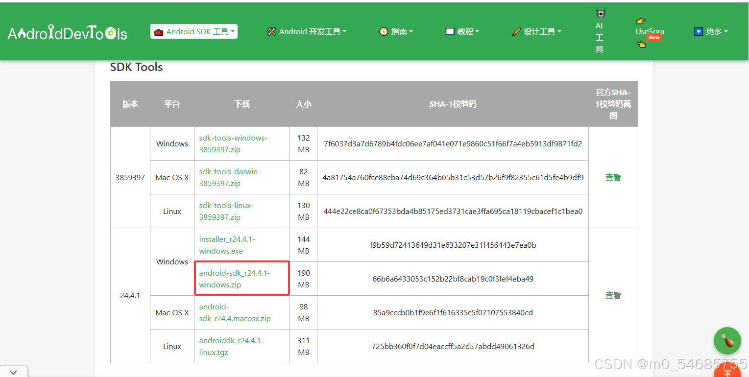 Windows系统点击android-sdk_r24.4.1-windows.zip下载压缩包