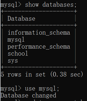 mysql -u root -p密码2、查看当前数据库,切换到MySQL系统数据库