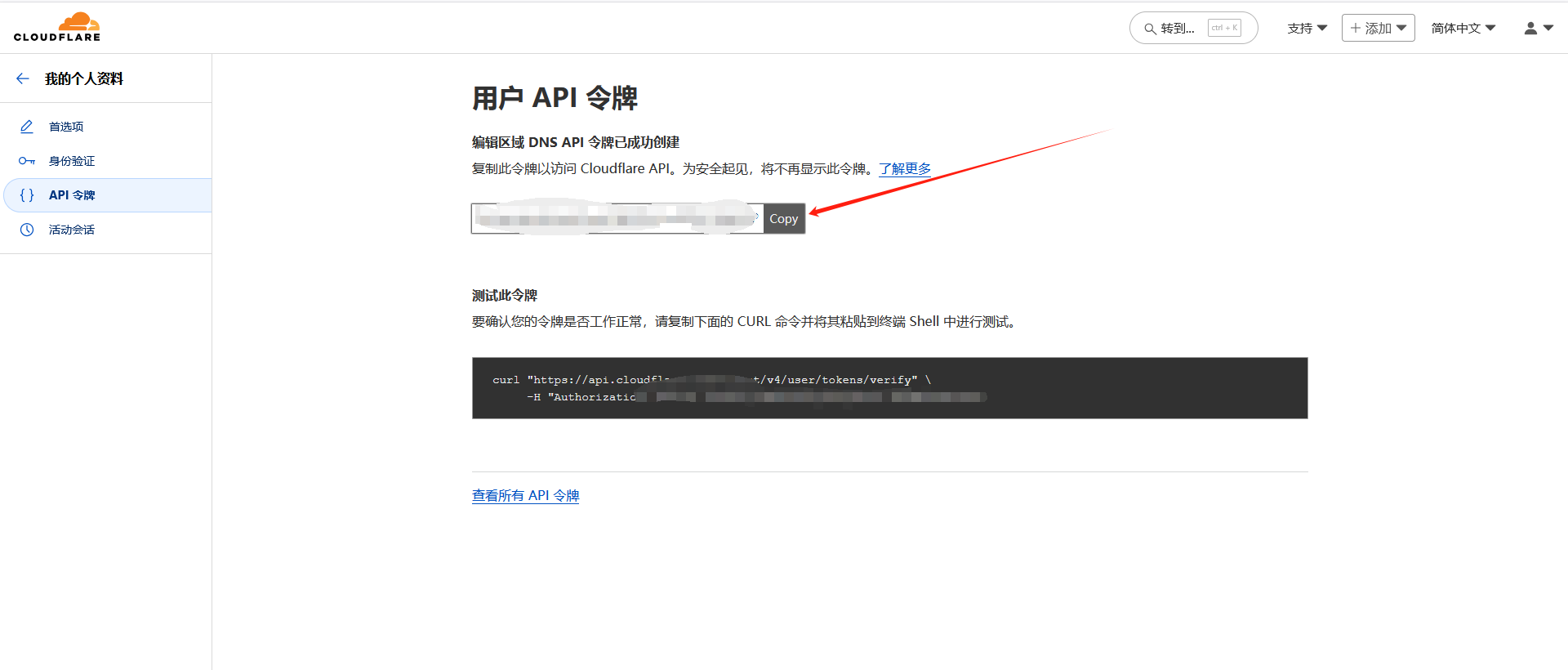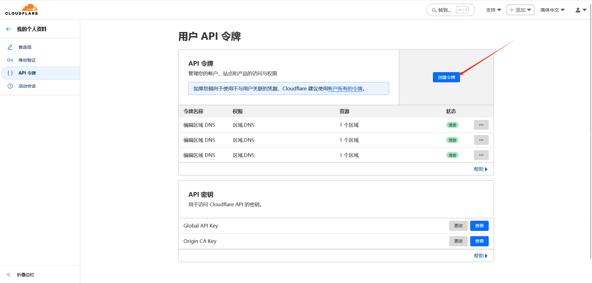 1、获取域名对应的api令牌;